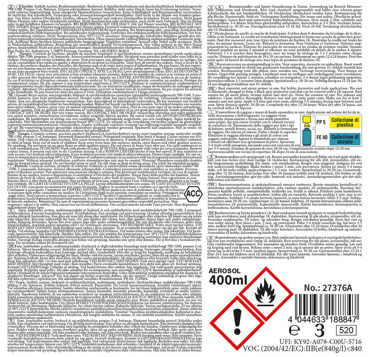 Army Rostumwandlerspray Das Army Rostumwandlerspray ist eine effektive Lösung zur Rostsanierung, die Rost chemisch umwandelt und gleichzeitig als Epoxy-Grundierung fungiert. Es bildet eine schützende schwarz-graue Schicht, die mit handelsüblichen 1K...