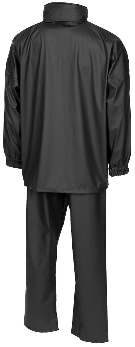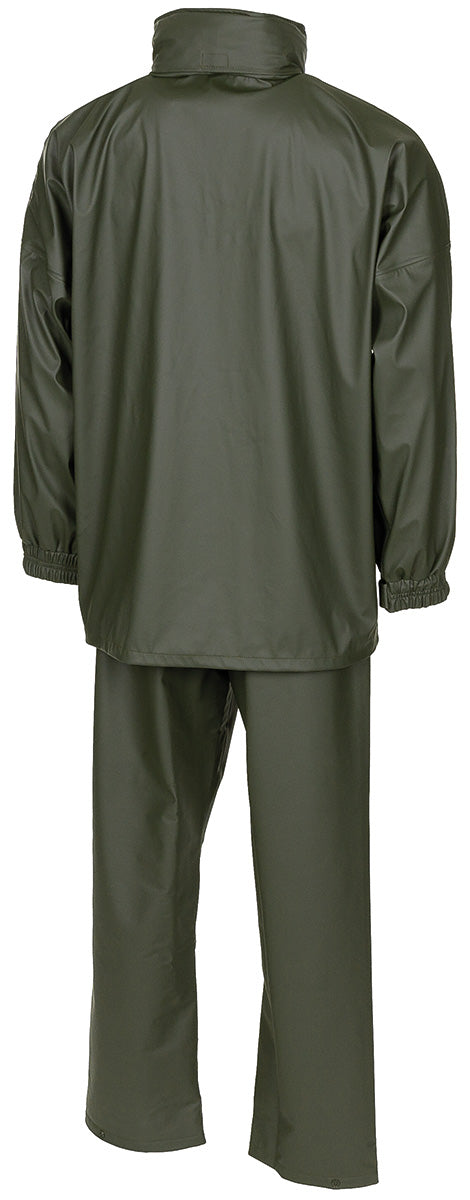 Der Regenanzug hat eine Wassersäule von 5000 mm und eine Atmungsaktivität von 5000 mvp (g/m²/24h), was ihn besonders funktional macht. Er besteht aus 100 % Polyurethan, einem Material, das sowohl leicht als auch strapazierfähig ist.