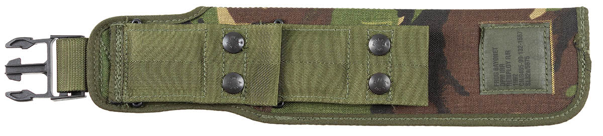 Die britische Bajonettscheide in DPM Tarnmuster ist eine hochwertige und neuwertige Aufbewahrungslösung für Ihre Bajonette. Sie bietet optimalen Schutz und eine sichere Aufbewahrung, ideal für Sammler, Militärenthusiasten oder für den praktischen Einsatz im Freien.