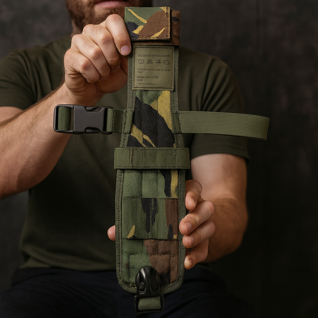 Die Holländische Messerhalterung am Bein ist eine praktische und funktionale Lösung für alle, die ihre Messer sicher und griffbereit aufbewahren möchten. Ideal für den Einsatz im Outdoor-Bereich, beim Camping oder in militärischen Anwendungen, bietet diese Halterung eine zuverlässige Möglichkeit, Ihr Messer stets zur Hand zu haben.