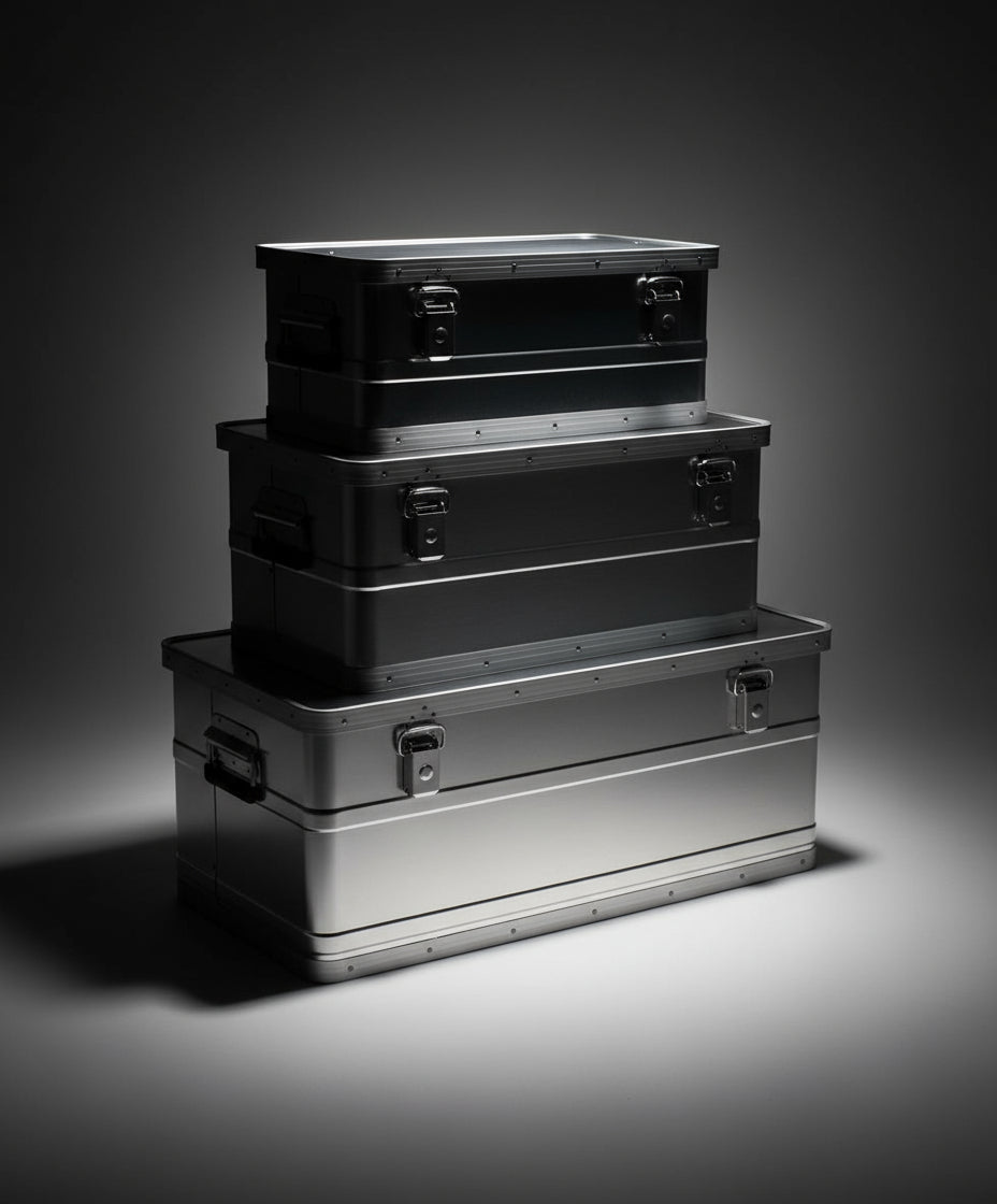 Die Transportkisten aus Aluminium im 3er Set bieten eine stabile, sichere und langlebige Lösung für den Transport und die Aufbewahrung Ihrer Ausrüstung. Ob Outdoor, Camping, Werkstatt oder Haushalt – diese Kisten überzeugen durch ihr geringes Gewicht, ihre Robustheit und ihre hohe Funktionalität. Perfekt für alle, die Wert auf Ordnung und Schutz legen.